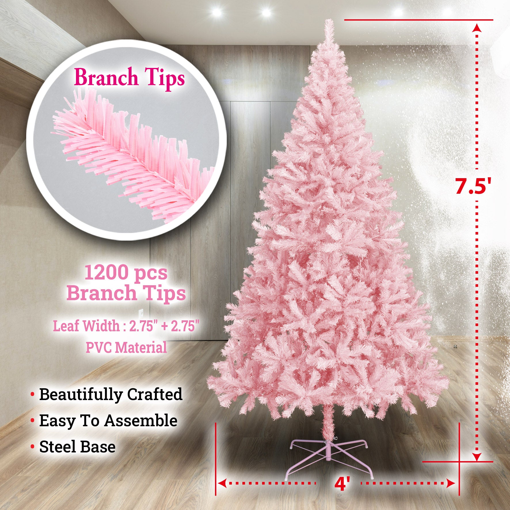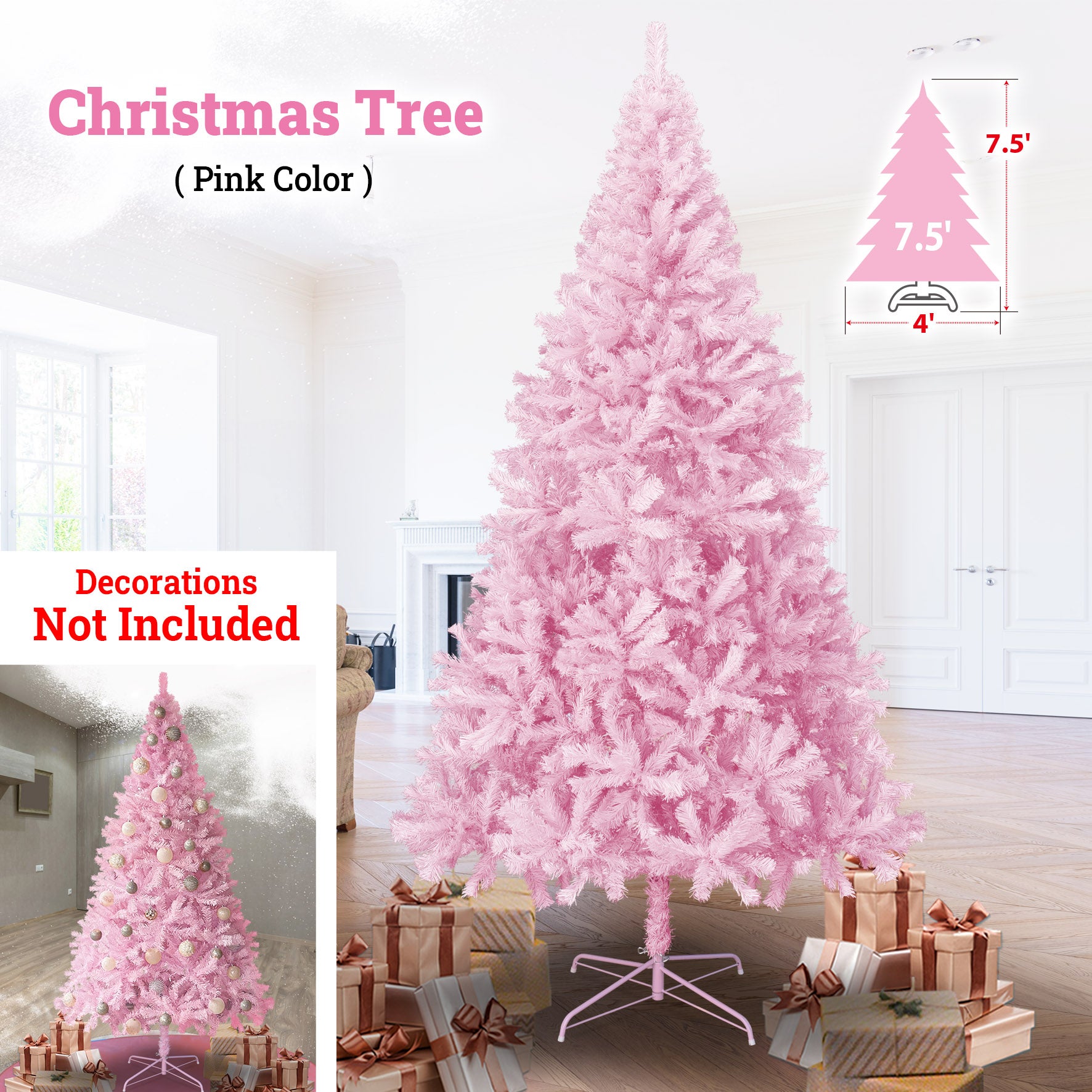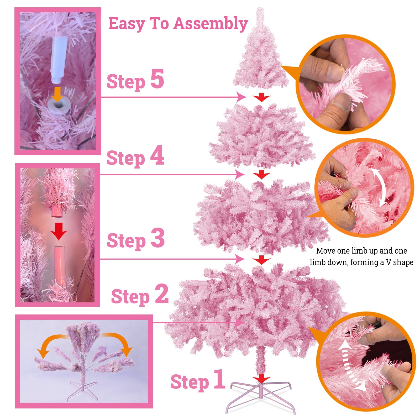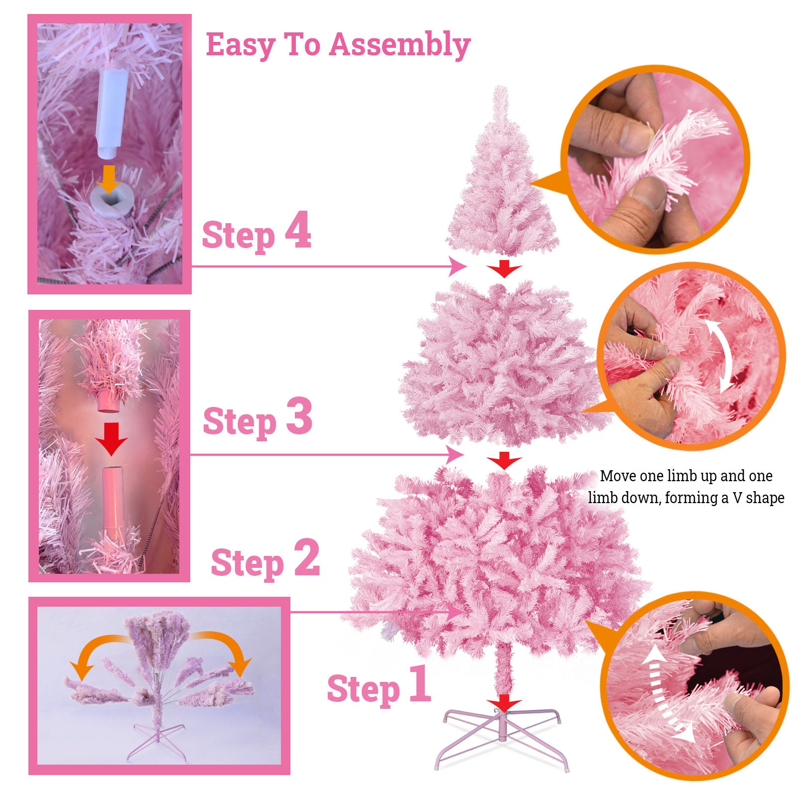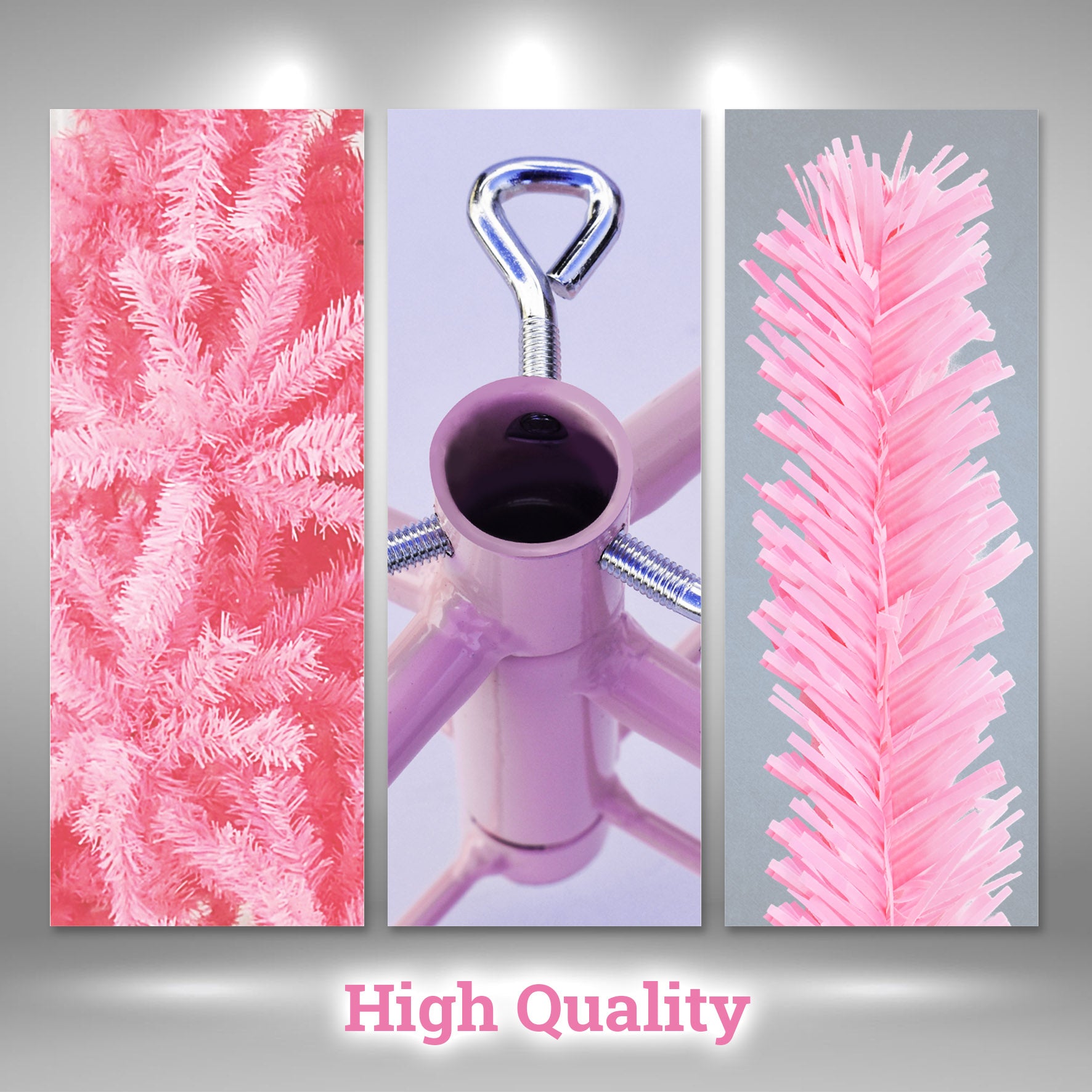 Pink Artificial Christmas Tree Unlit Hinged Spruce Full Tree Indoor Holiday Festival Party Decoration, with Metal Stand