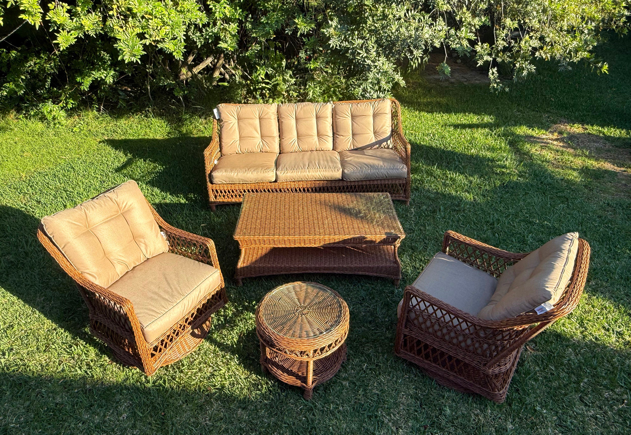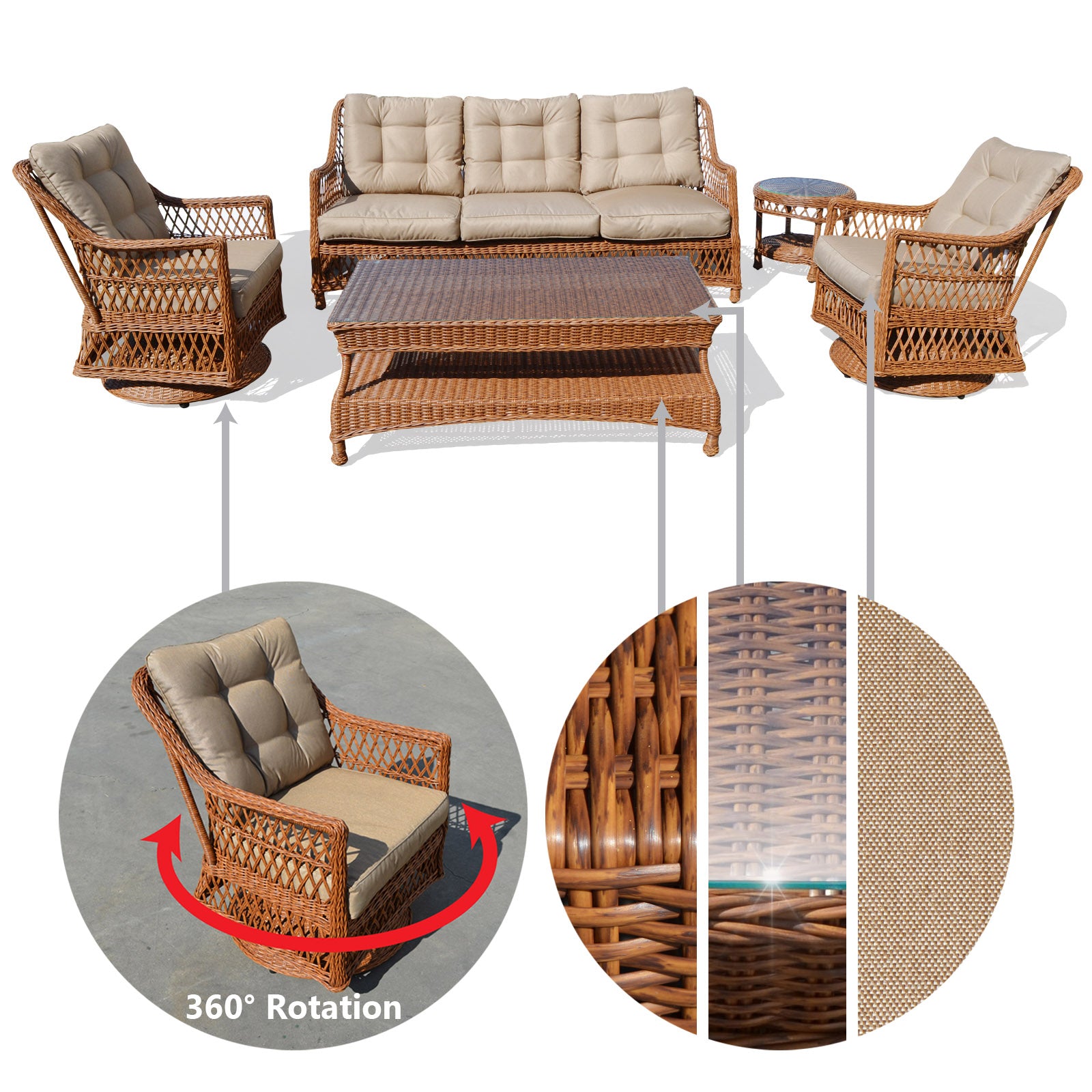 Enhance your outdoor living space with this beautiful, complete 5-piece wicker rattan patio sofa set! Perfect for relaxing, entertaining, and enjoying the great outdoors. This set combines comfort, style, and unique functionality.