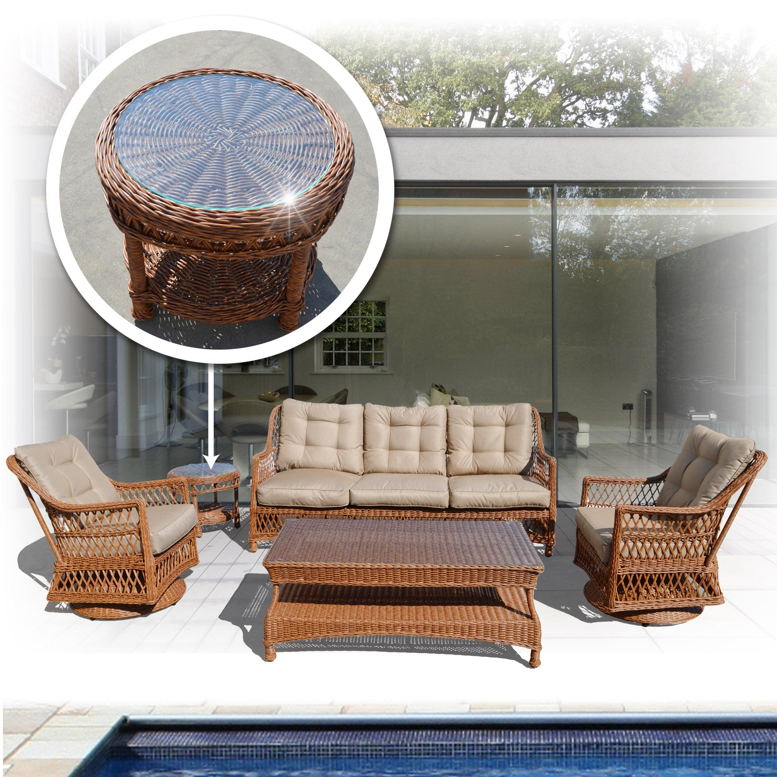 Complete Set: Includes a spacious three-seater sofa, two swivel armchairs, and TWO matching tables for ultimate versatility.